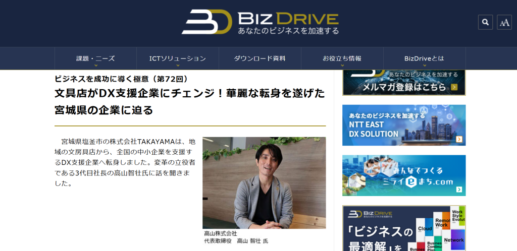 NTT 東日本が運営する『Biz Drive(ビズドライブ)』に弊社のDXの取り組みを掲載していただきました。